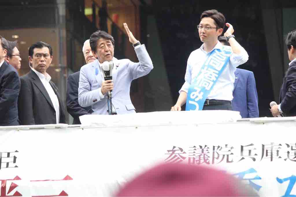昨日、兵庫県で応援演説に入った、安倍首相。
