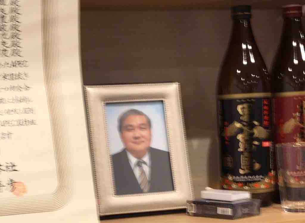 微笑む武田さんの遺影の横には、大好きな焼酎と欠かさなかった、タバコ、ライターが